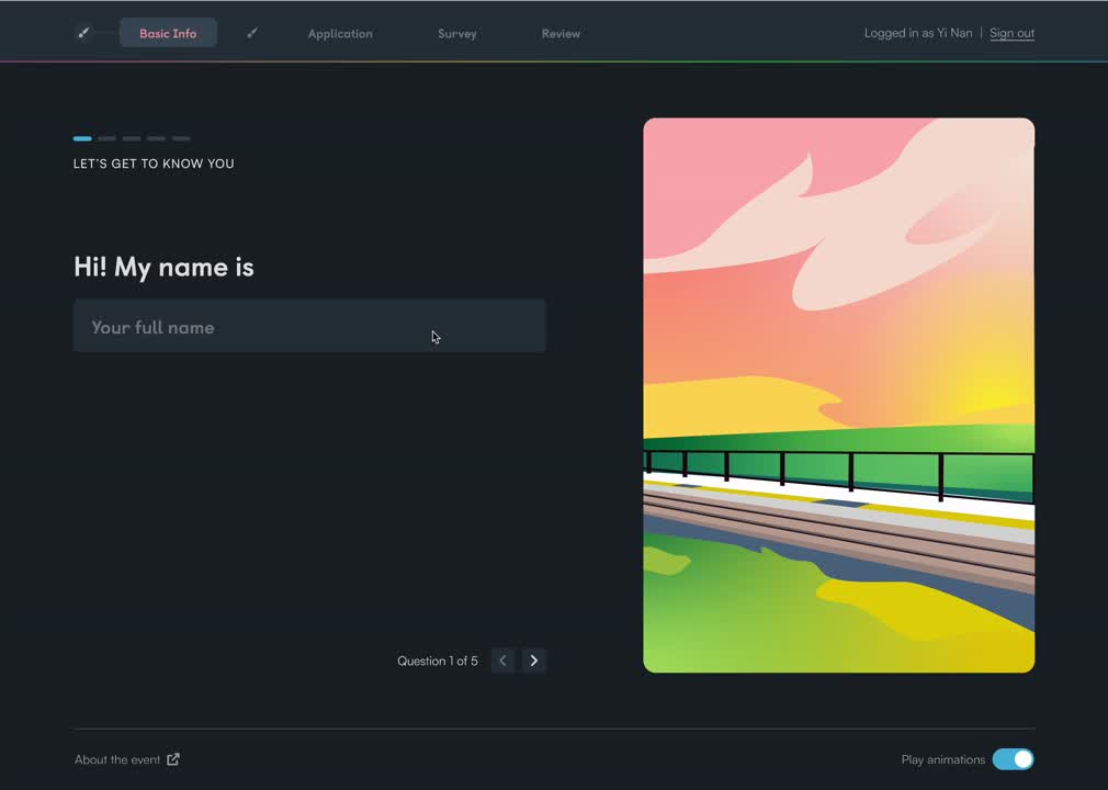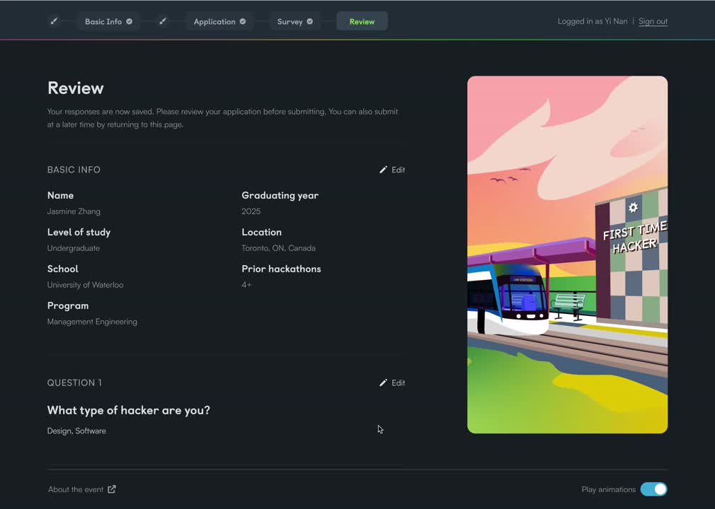 “At Hack the North, animations are a fundamental part of our brand and the first thing people see when they land on our site. A great animation doesn’t just look good—it enhances the user experience and sets us apart.” – Kelvin Zhang (Product Designer & Prev. Front-end Dev)