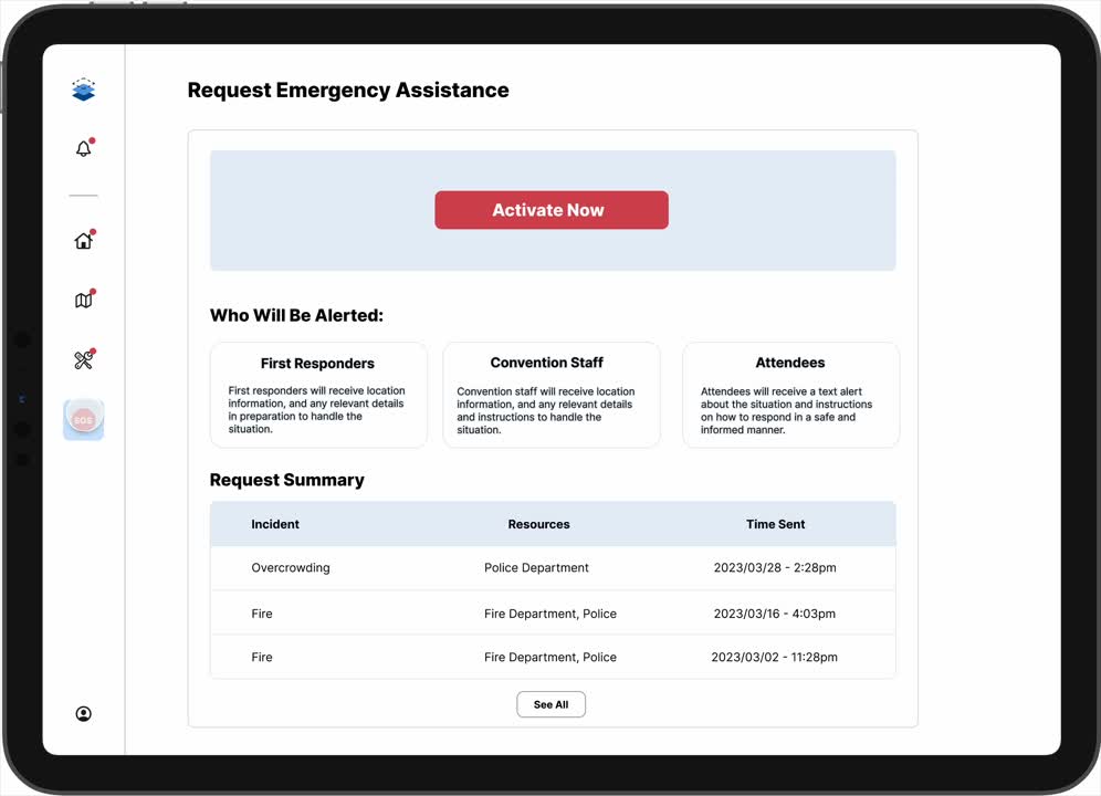 ViVe’s emergency system notifies responders instantly and shows attendees what to do in seconds.